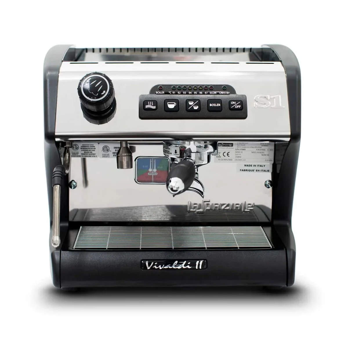 The La Spaziale Vivaldi II and Mini Vivaldi II are compact dual boiler espresso machines that deliver commercial-level performance in a footprint suited for home or small office use. Both models feature a powerful dual boiler system that allows for simultaneous brewing and steaming, as well as precise group temperature control for consistent espresso extraction. Designed with ease of use in mind, they include volumetric shot dosing, programmable temperature settings, and a front-loading water reservoir on the Mini version, while the standard Vivaldi II is plumbed in for continuous water access and features a quieter rotary pump.
